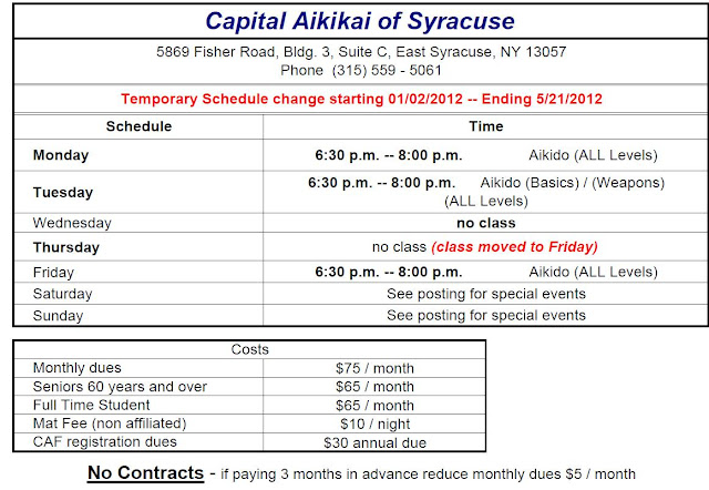Class Schedule 2012, Capital Aikikai of Syracuse